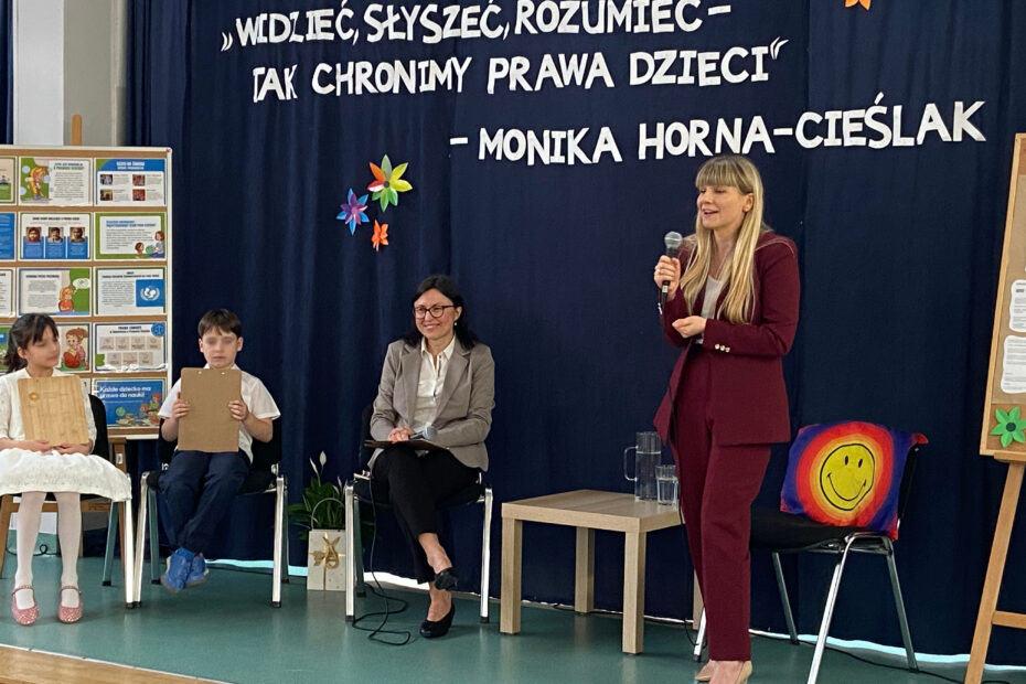 To nie był zwykły czwartek! 26 marca 2026 roku nasza szkoła zamieniła się w miejsce pełne inspirujących rozmów, ważnych pytań i dziecięcej energii. Gościliśmy osobę wyjątkową – Monikę Horną-Cieślak, Rzeczniczkę Praw Dziecka, która odwiedziła uczniów i uczennice klas 1-3.